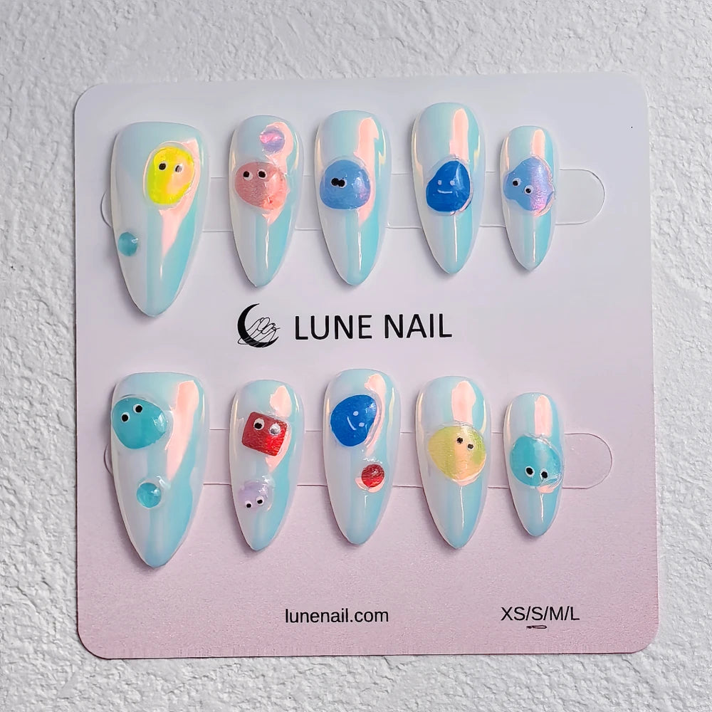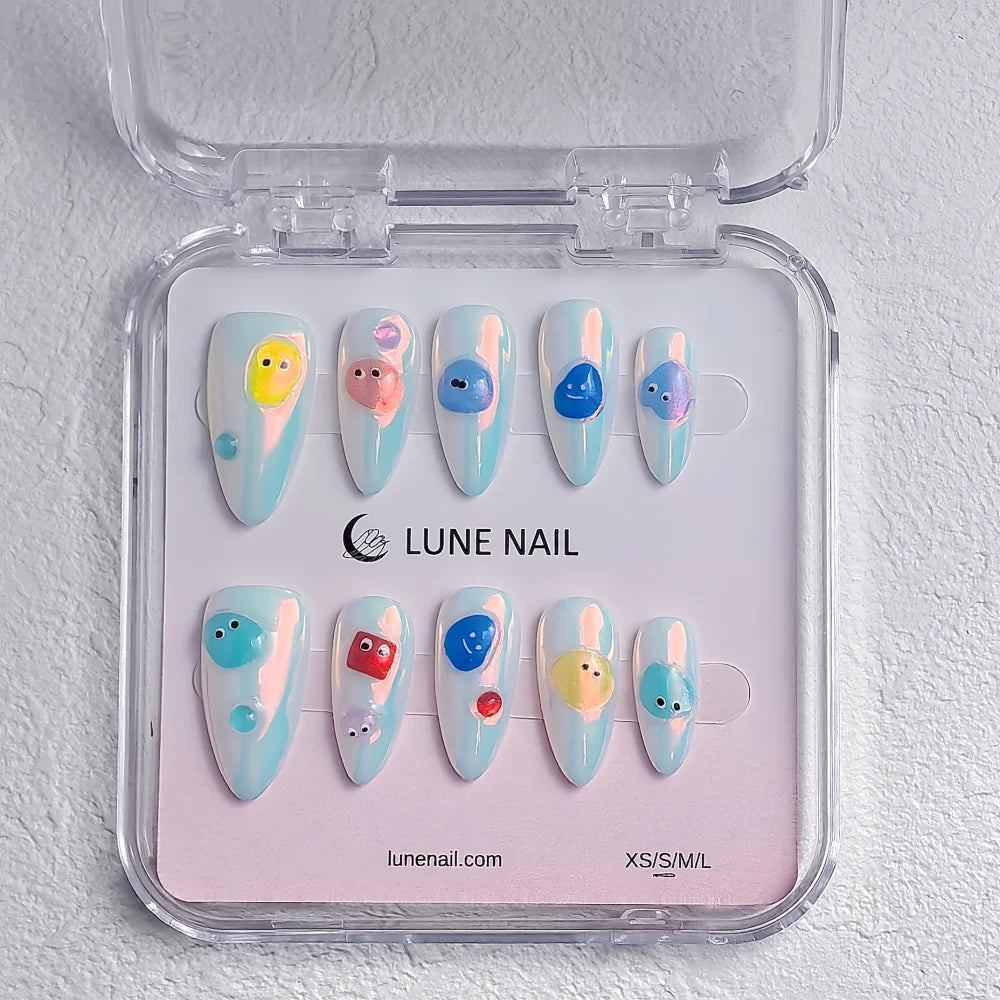 - 10 hand-crafted press-on nails, perfectly shaped & pre-designed