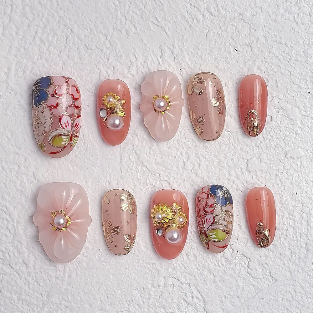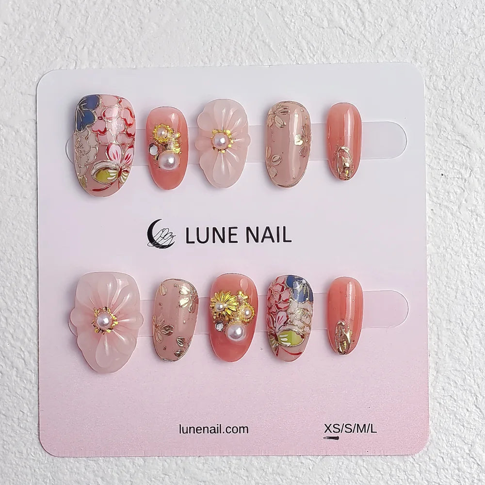 - 10 hand-crafted press-on nails, perfectly shaped & pre-designed