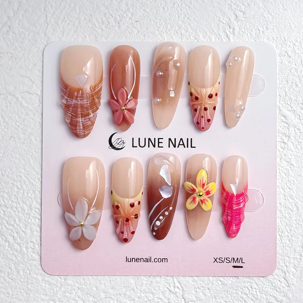 - 10 hand-crafted press-on nails, perfectly shaped & pre-designed