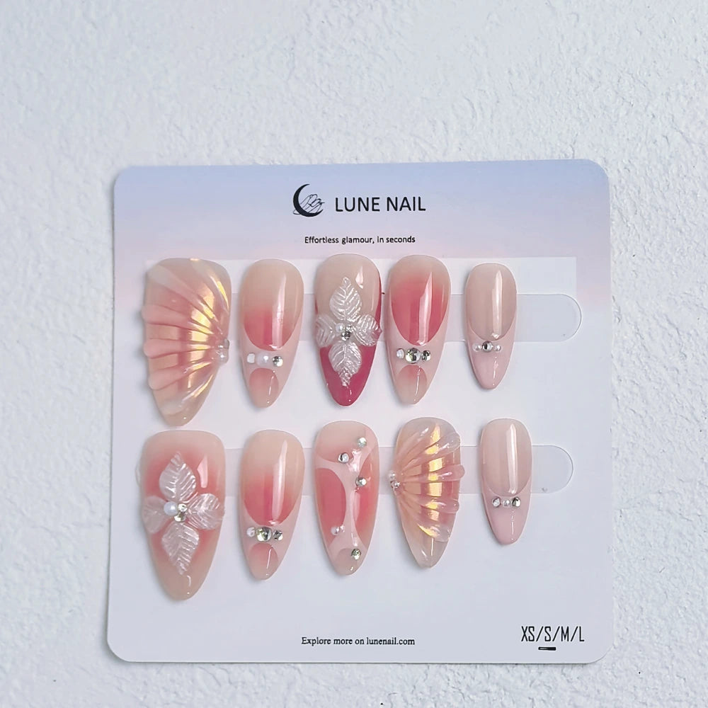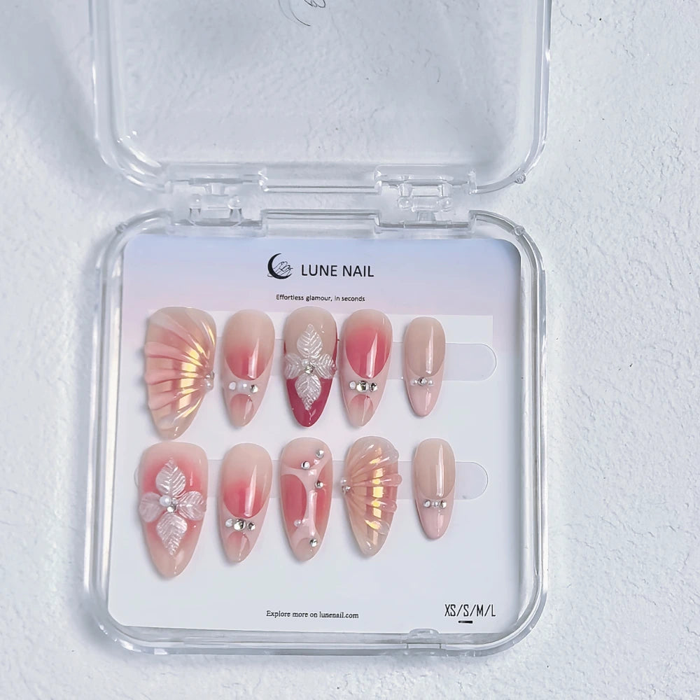 - 10 hand-crafted press-on nails, perfectly shaped & pre-designed