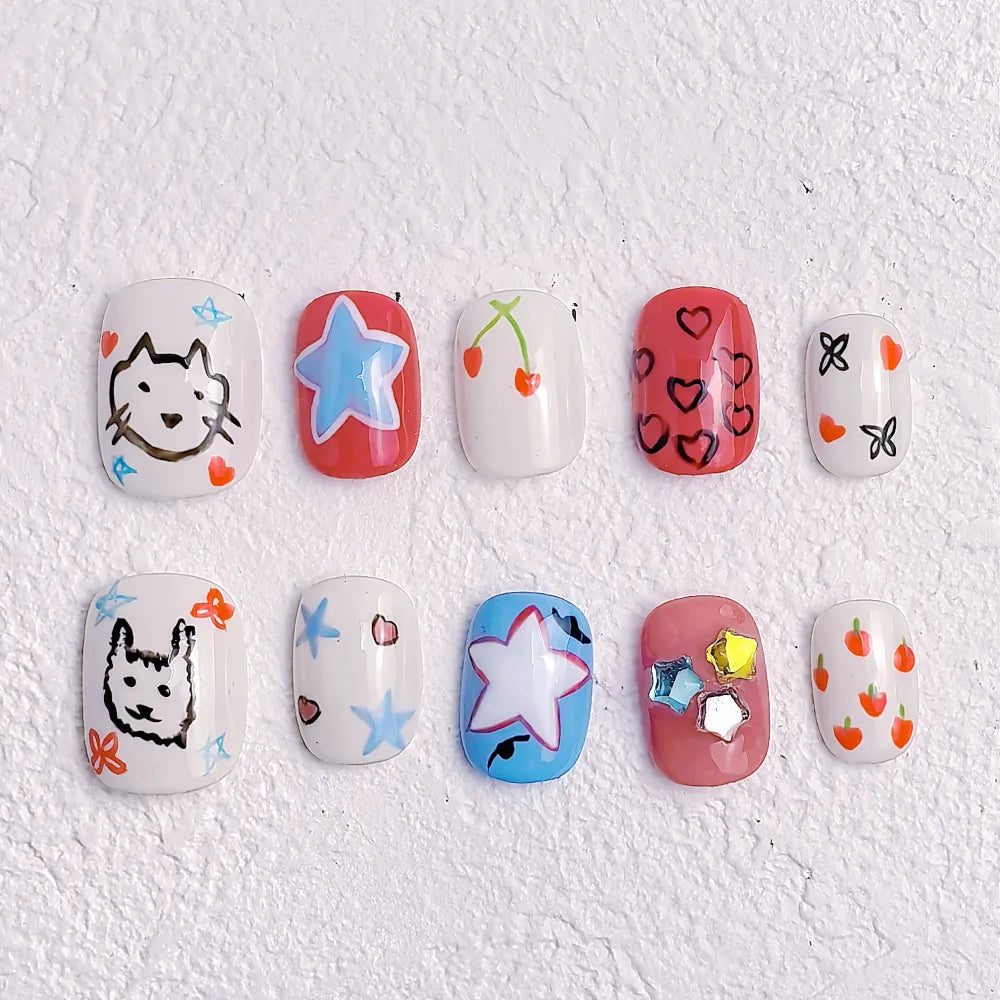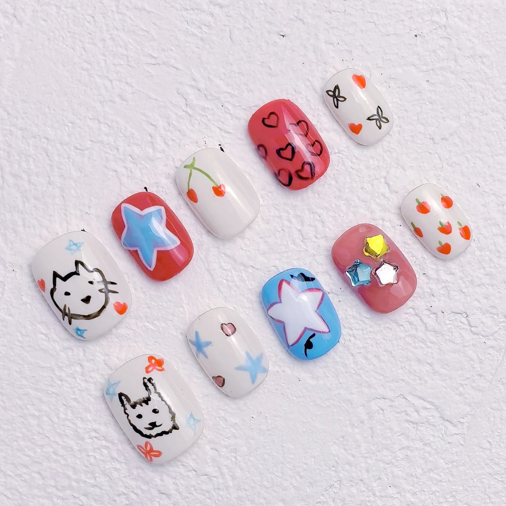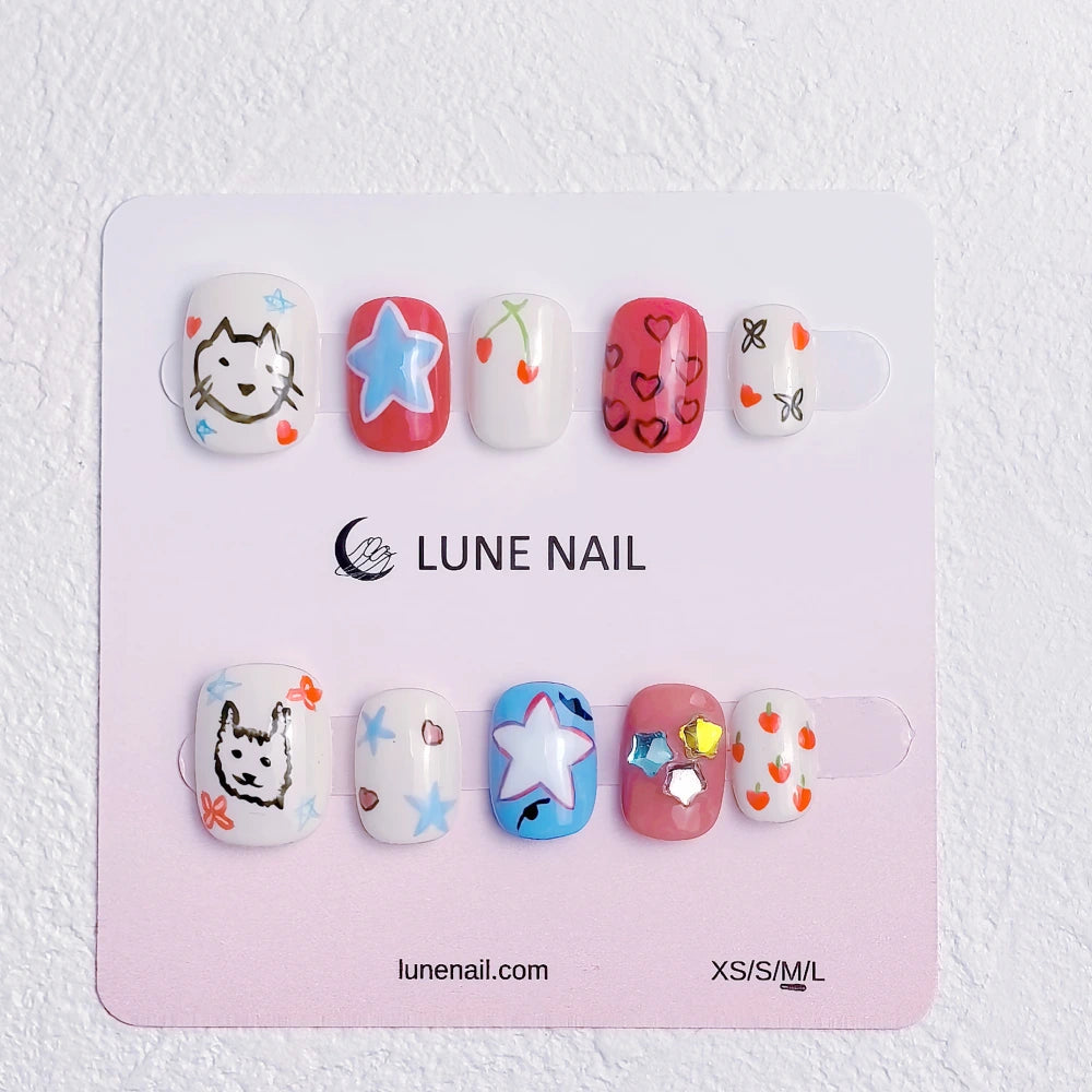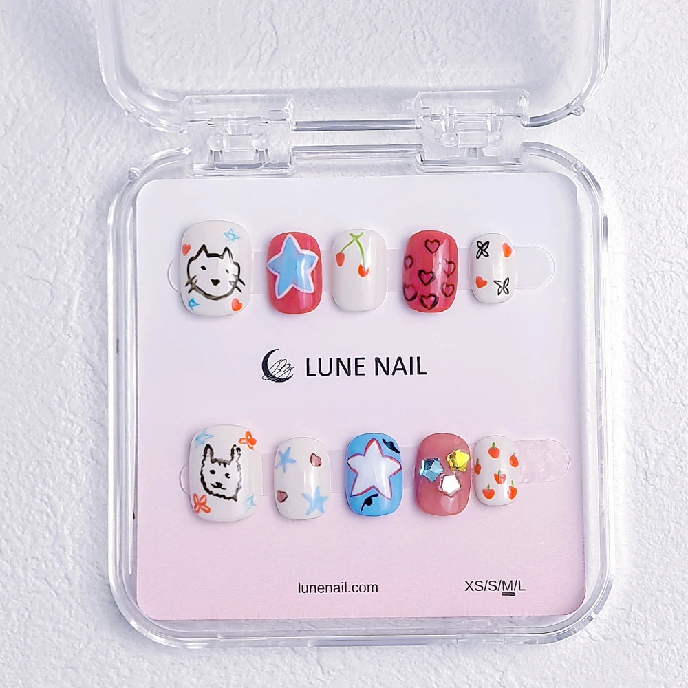- 10 hand-crafted press-on nails, perfectly shaped & pre-designed
