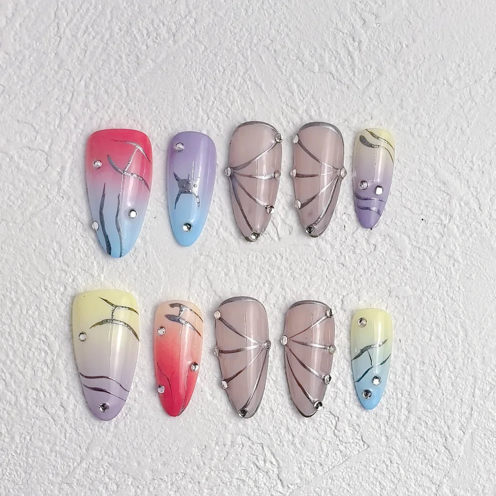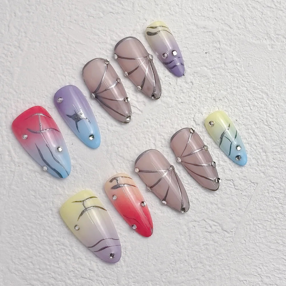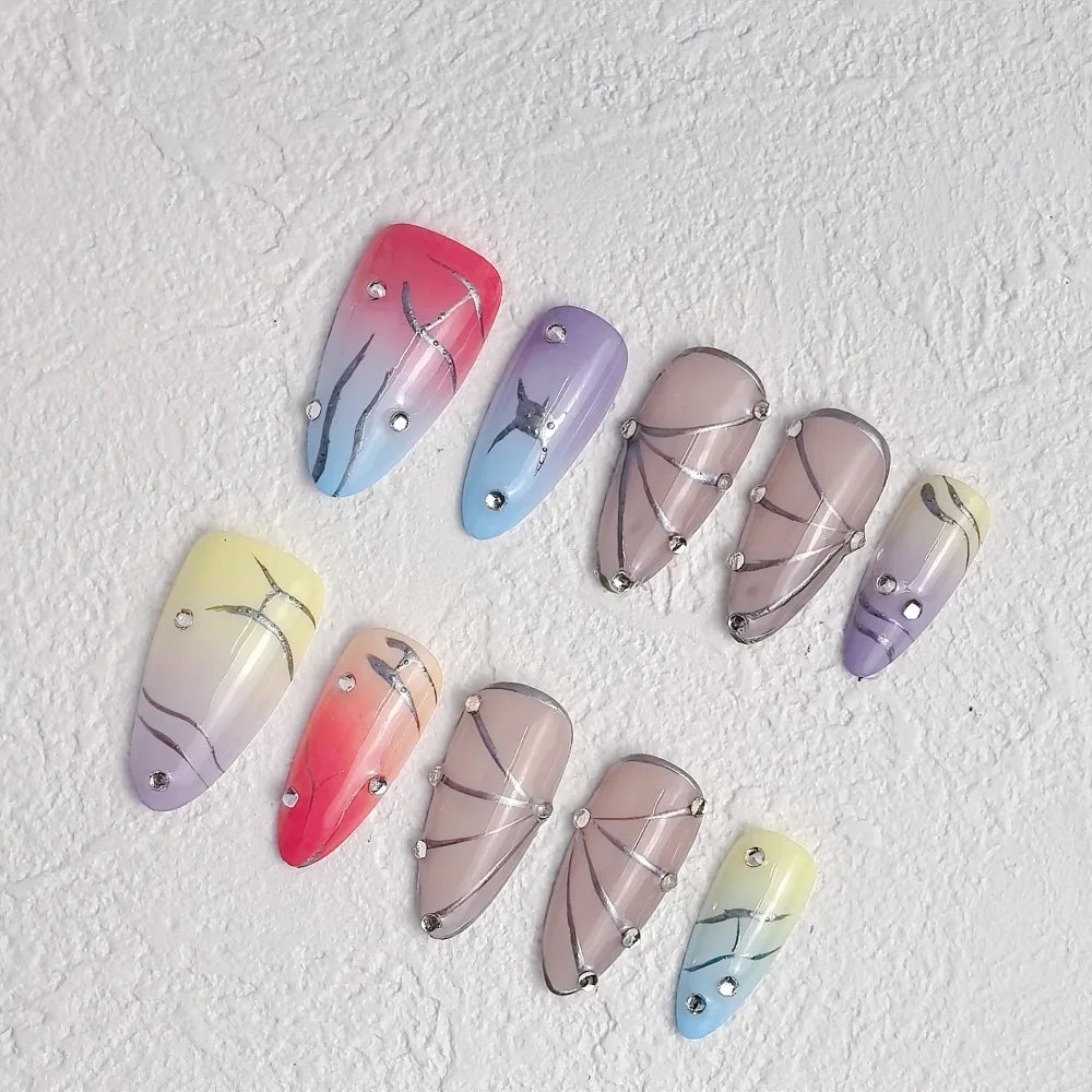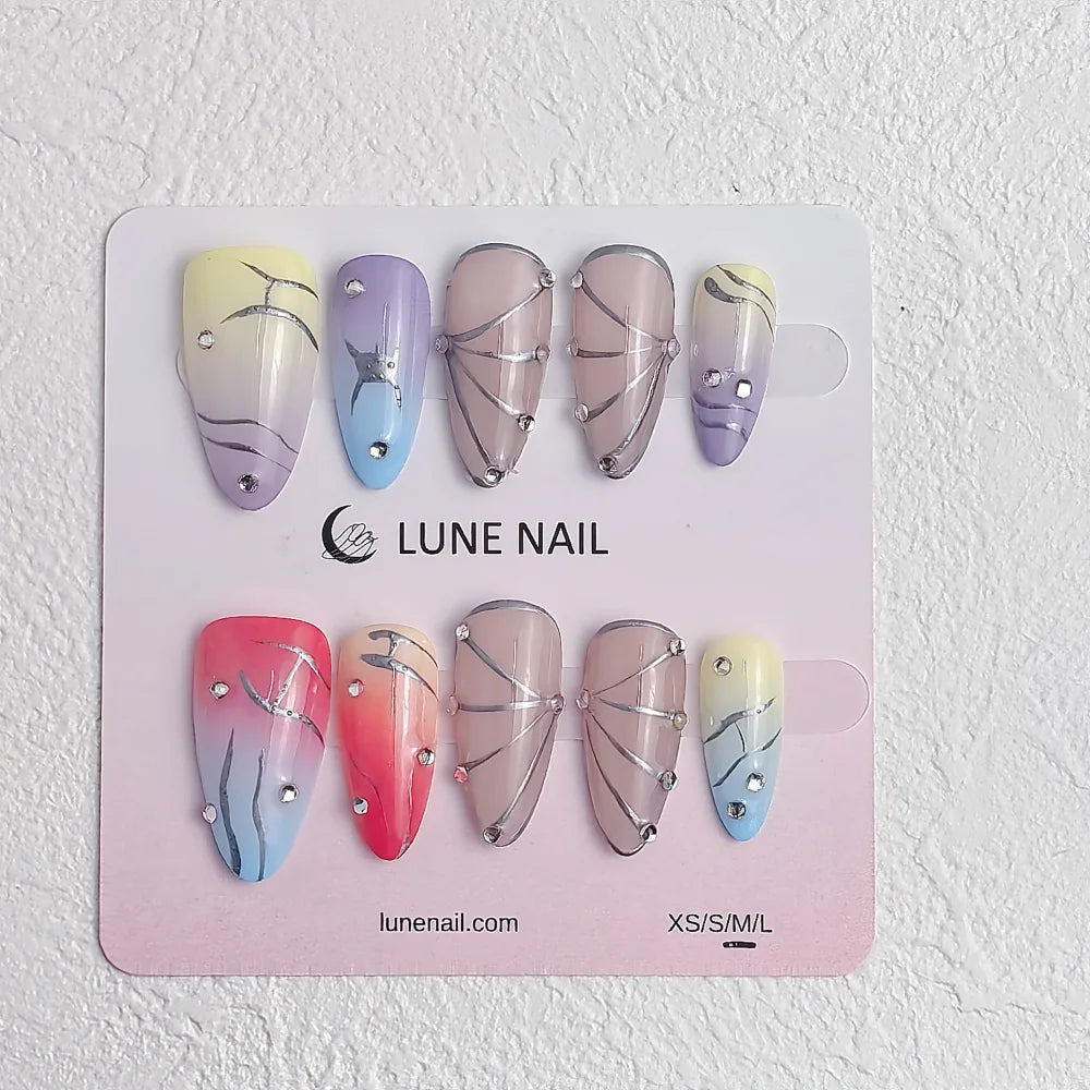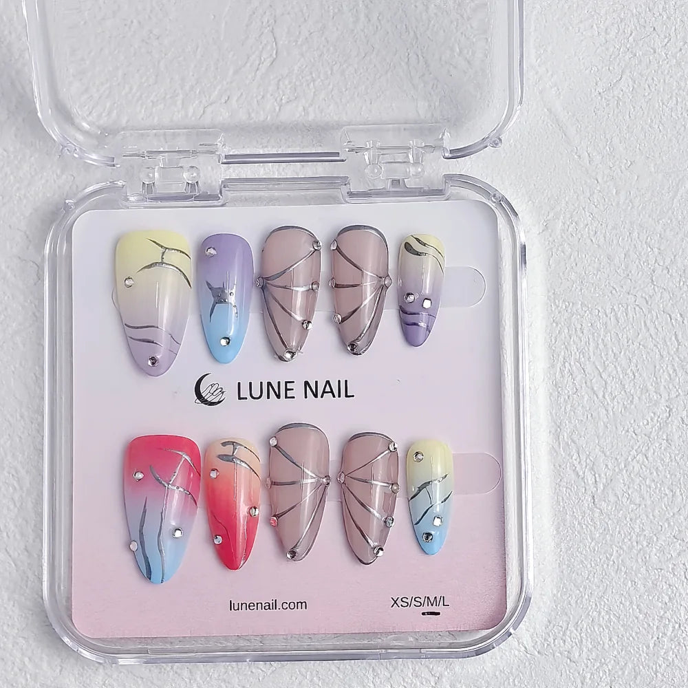 - 10 hand-crafted press-on nails, perfectly shaped & pre-designed