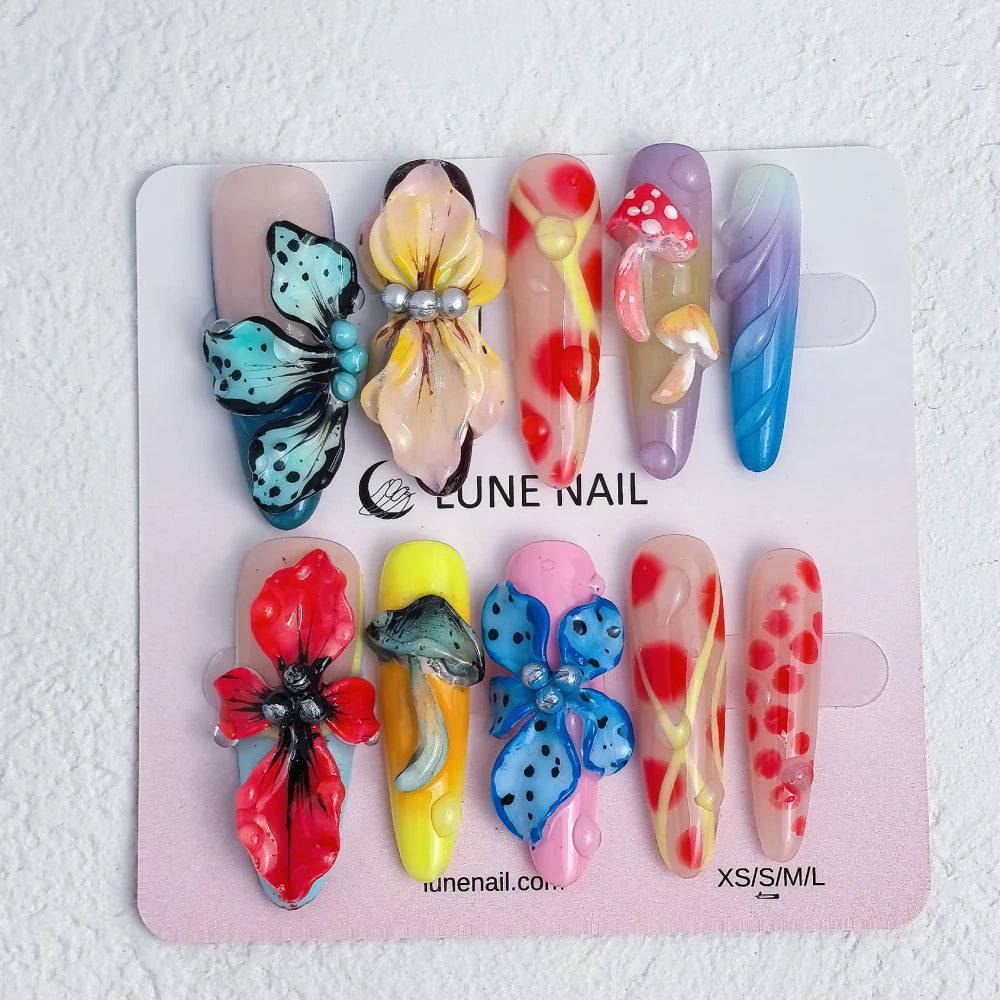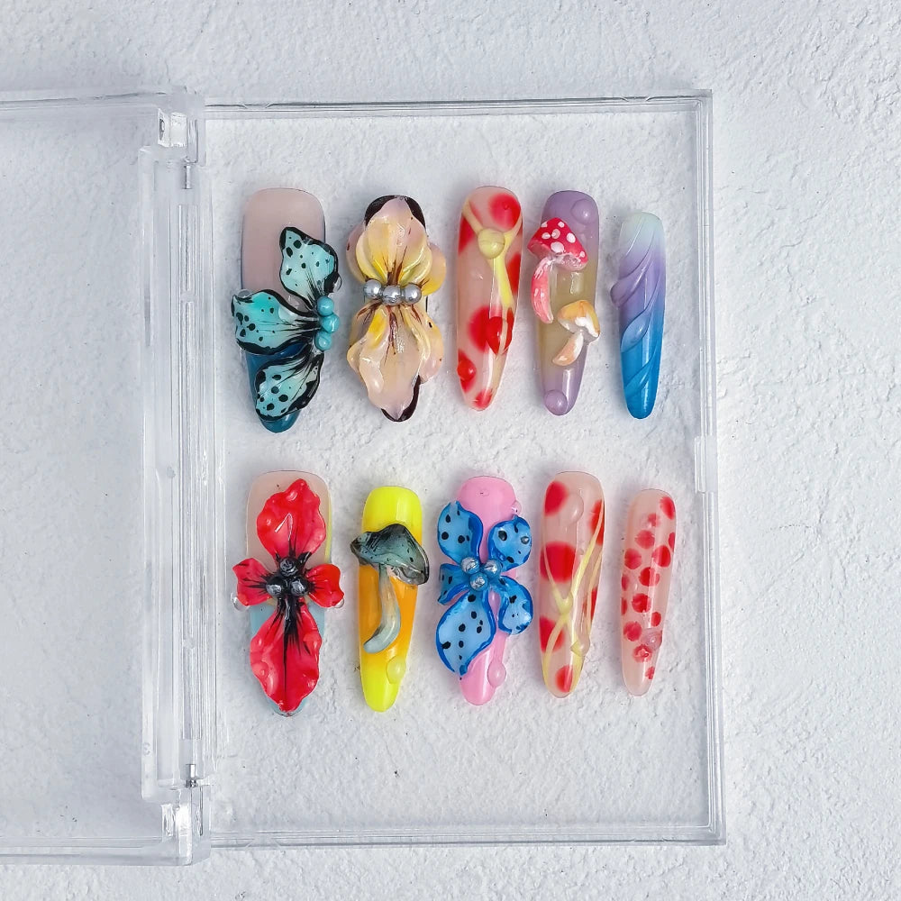 - 10 hand-crafted press-on nails, perfectly shaped & pre-designed
