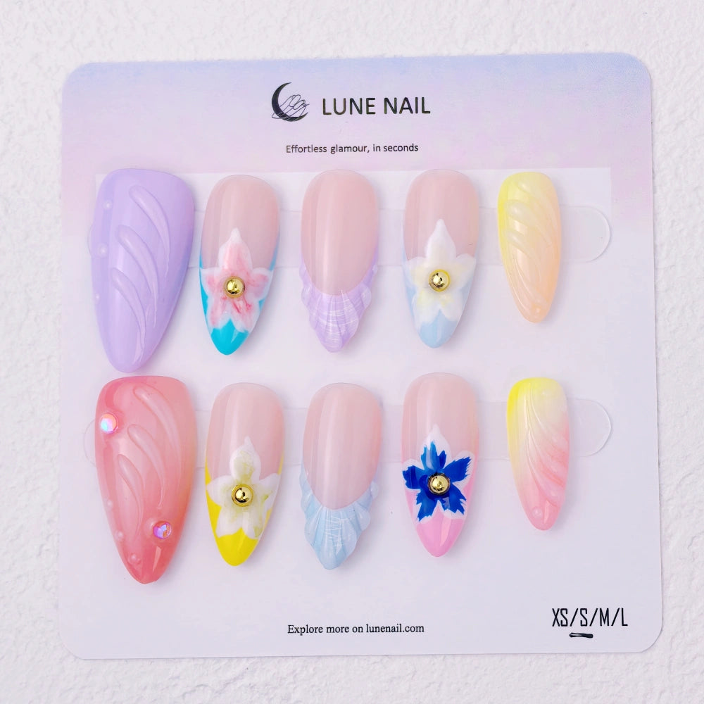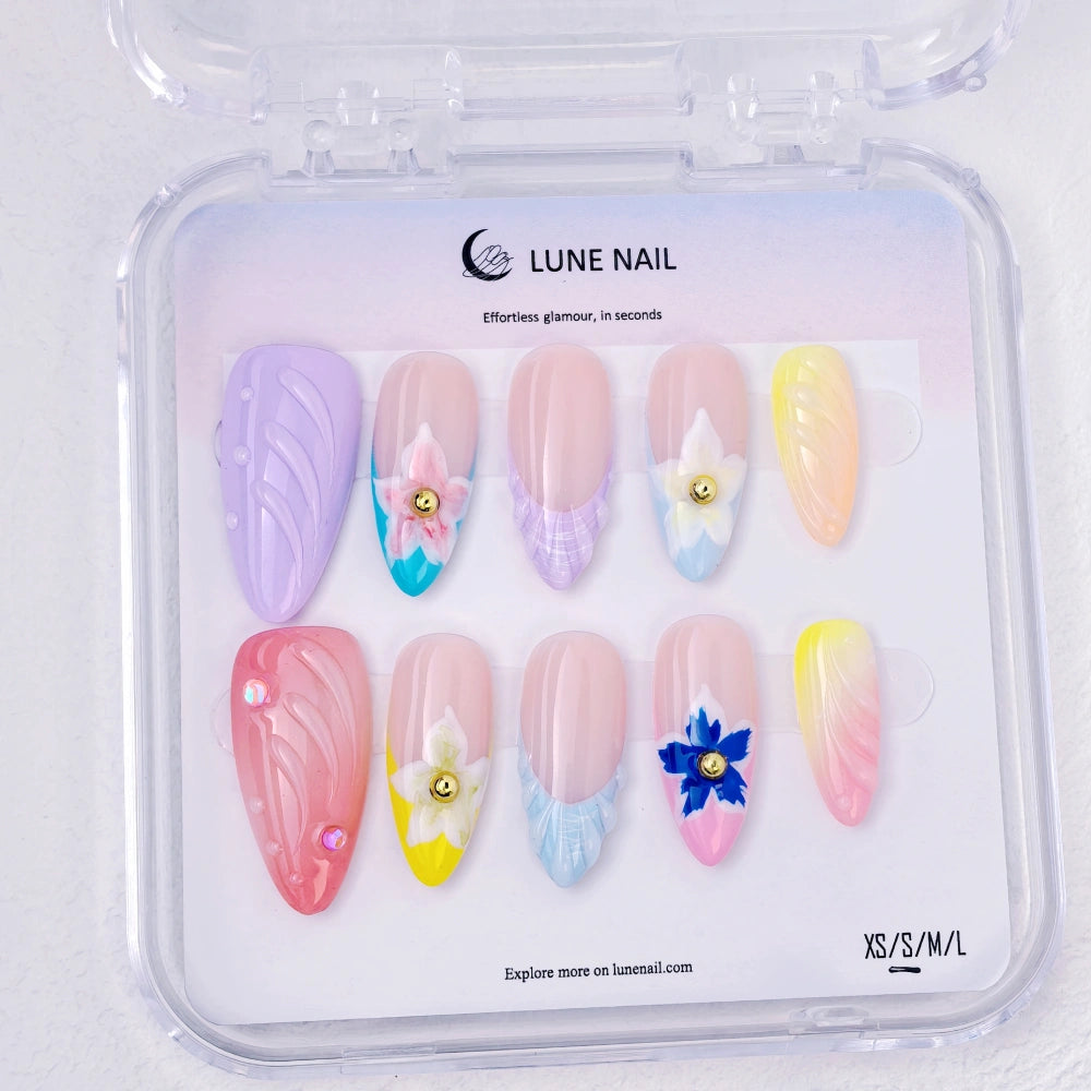 - 10 hand-crafted press-on nails, perfectly shaped & pre-designed