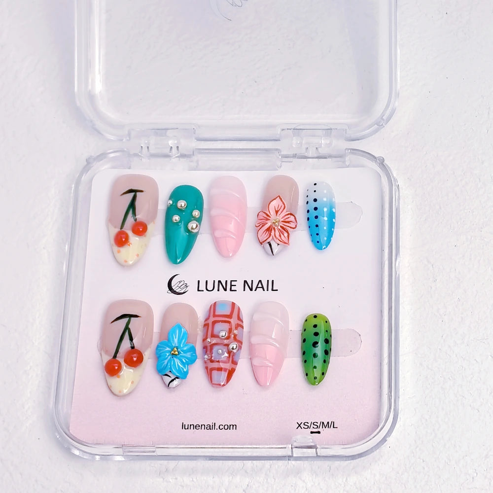 - 10 hand-crafted press-on nails, perfectly shaped & pre-designed
