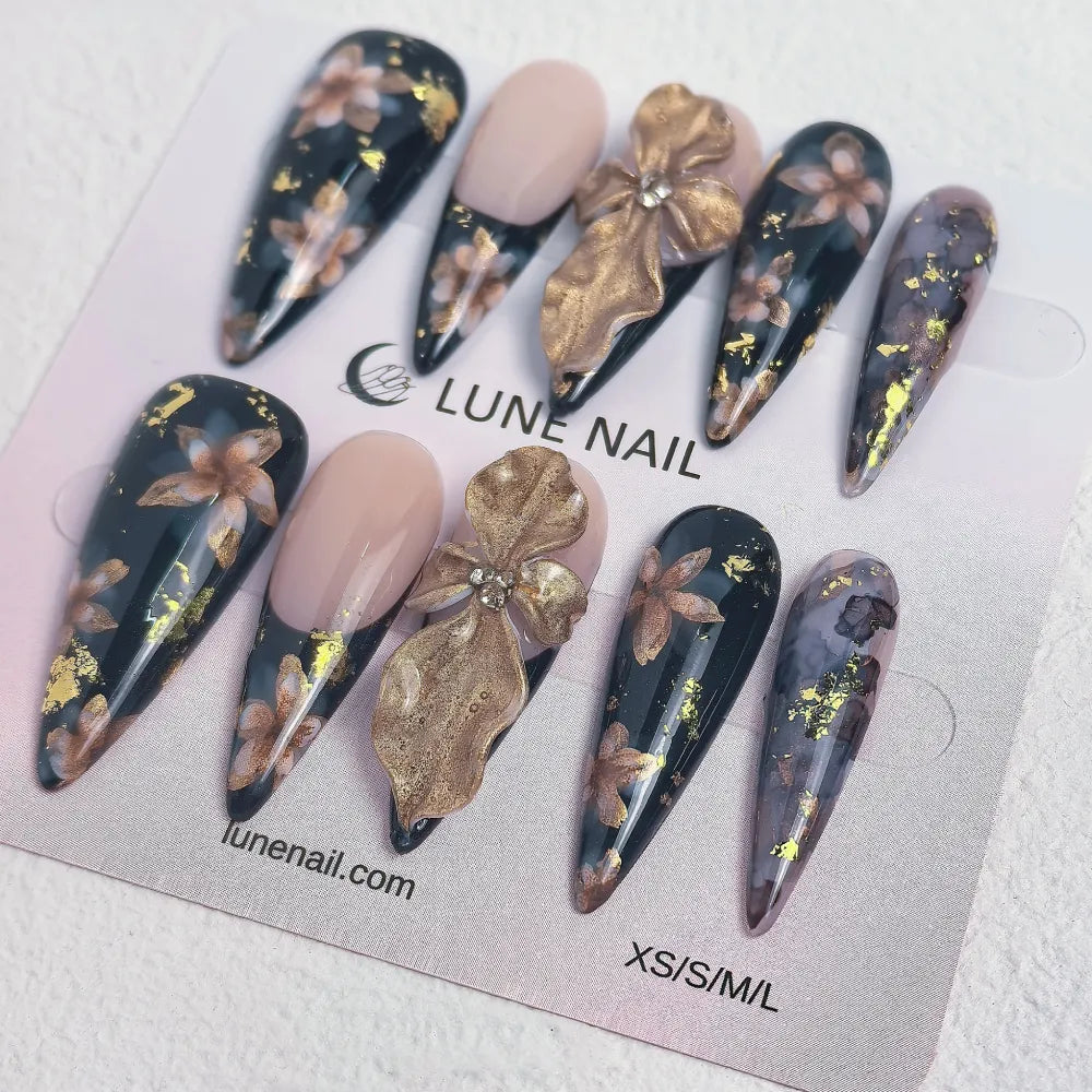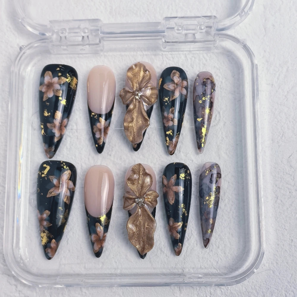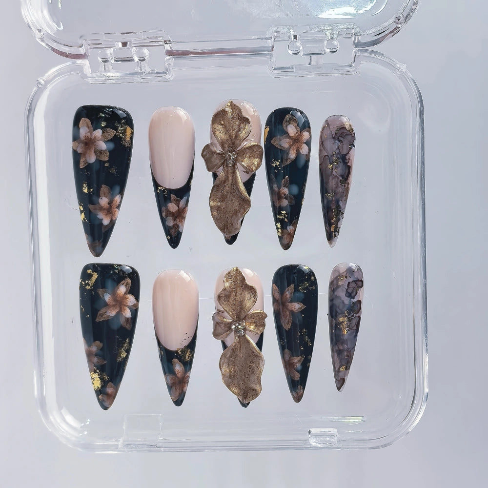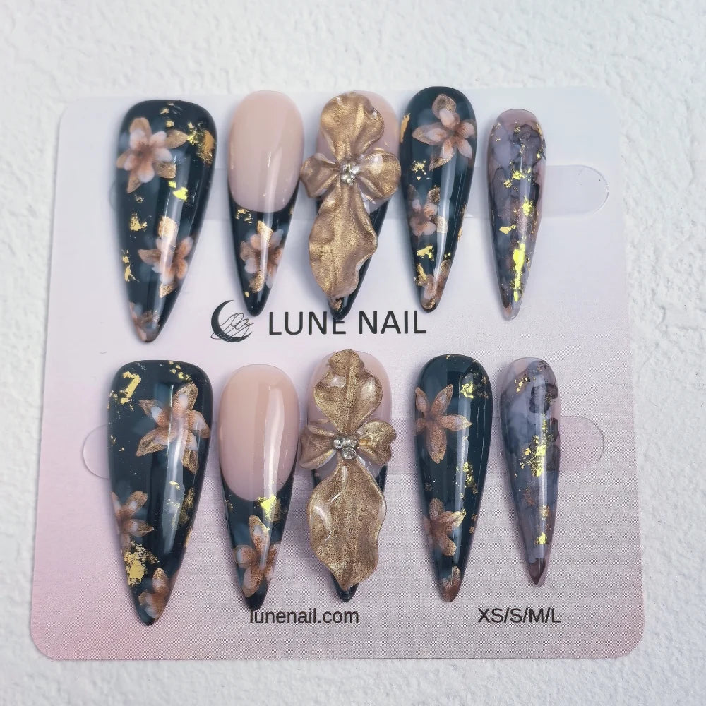 - 10 hand-crafted press-on nails, perfectly shaped & pre-designed