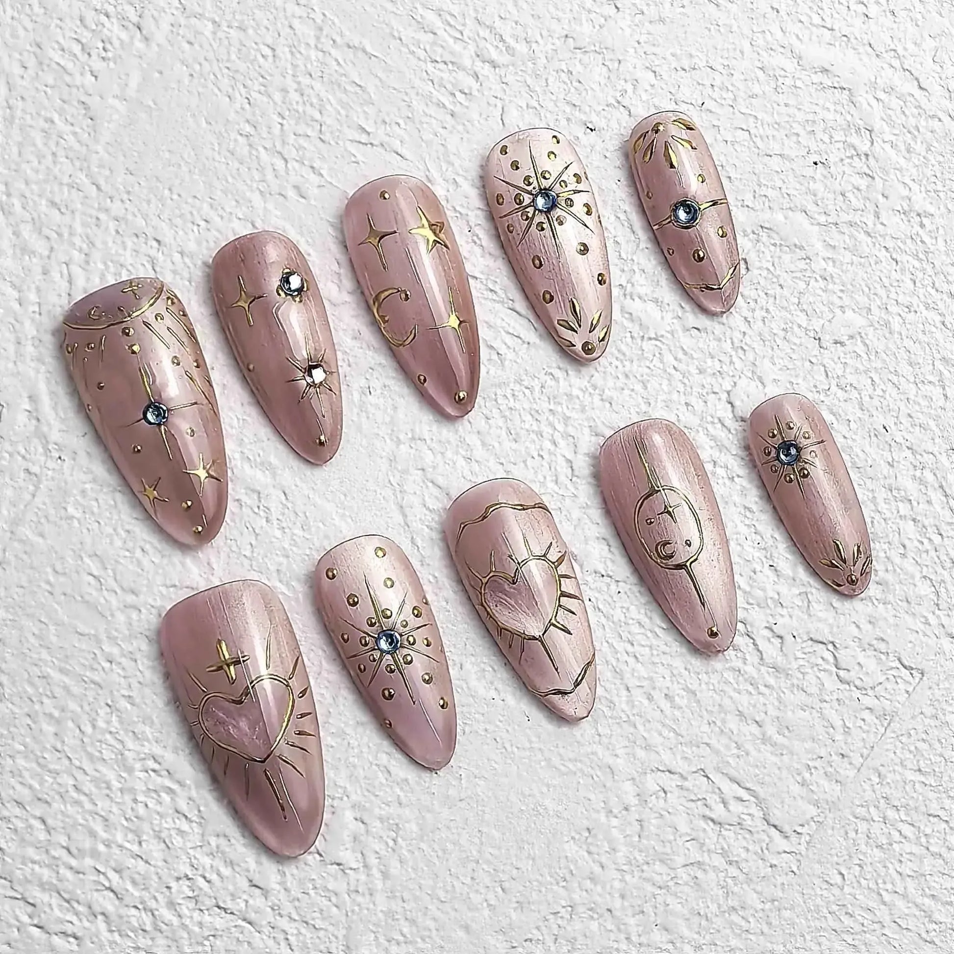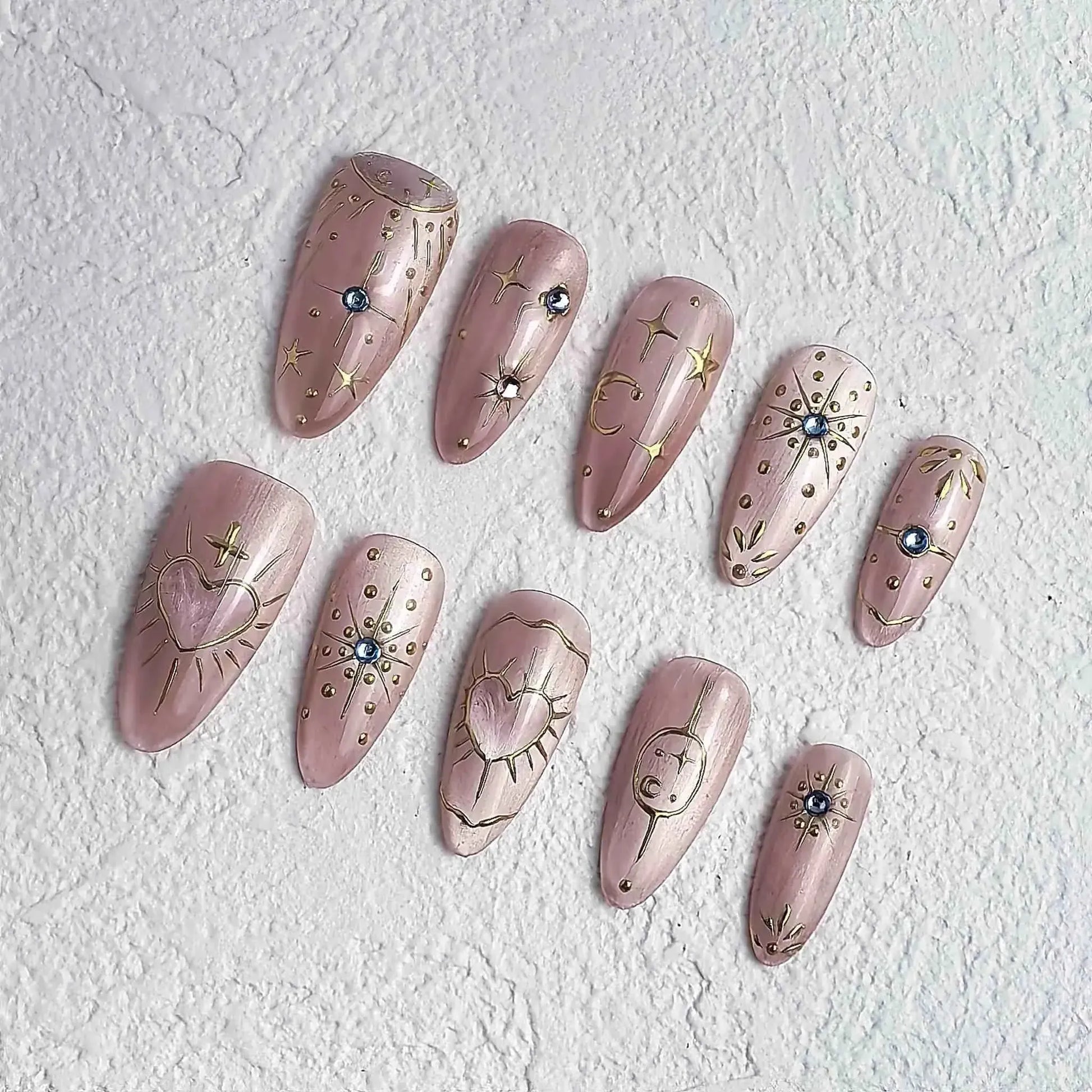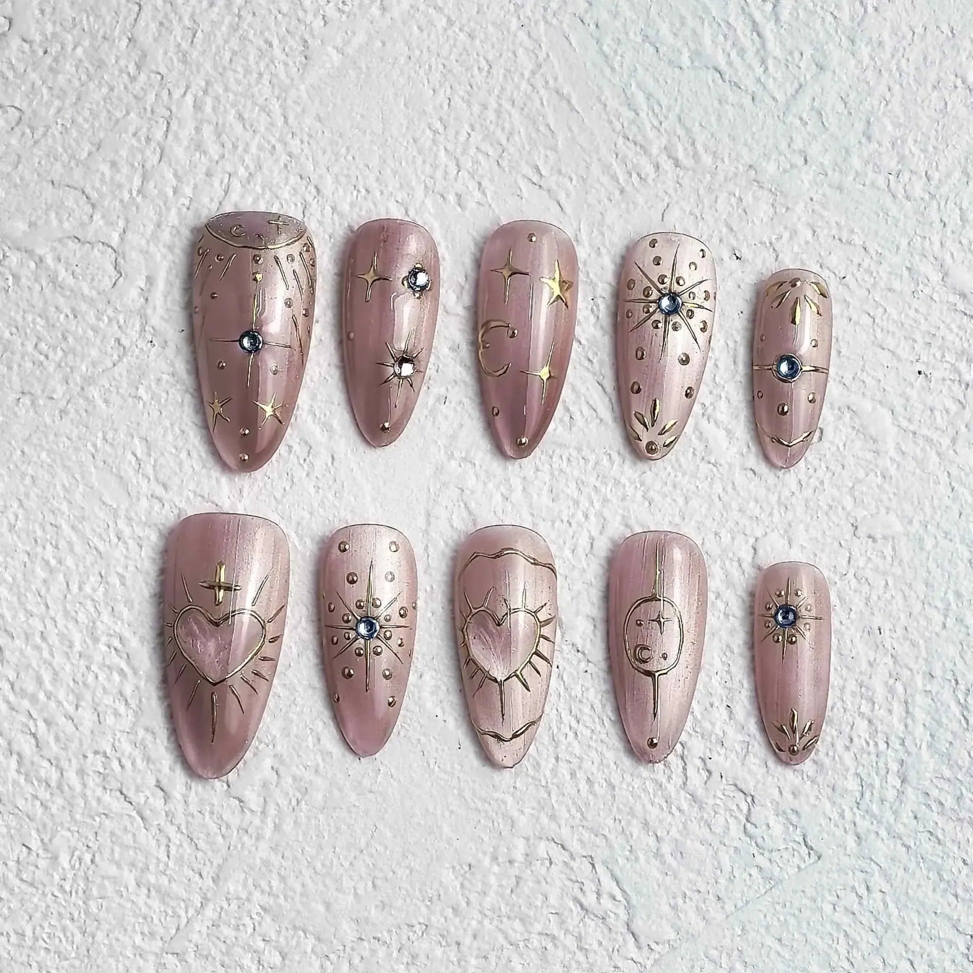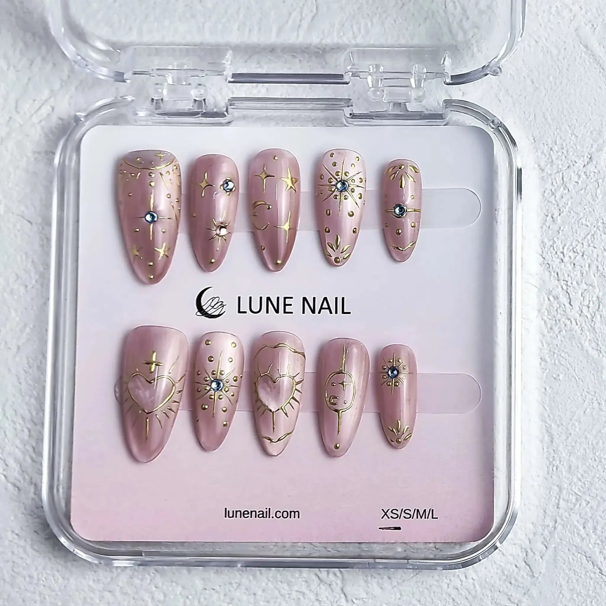 - 10 hand-crafted press-on nails, perfectly shaped & pre-designed