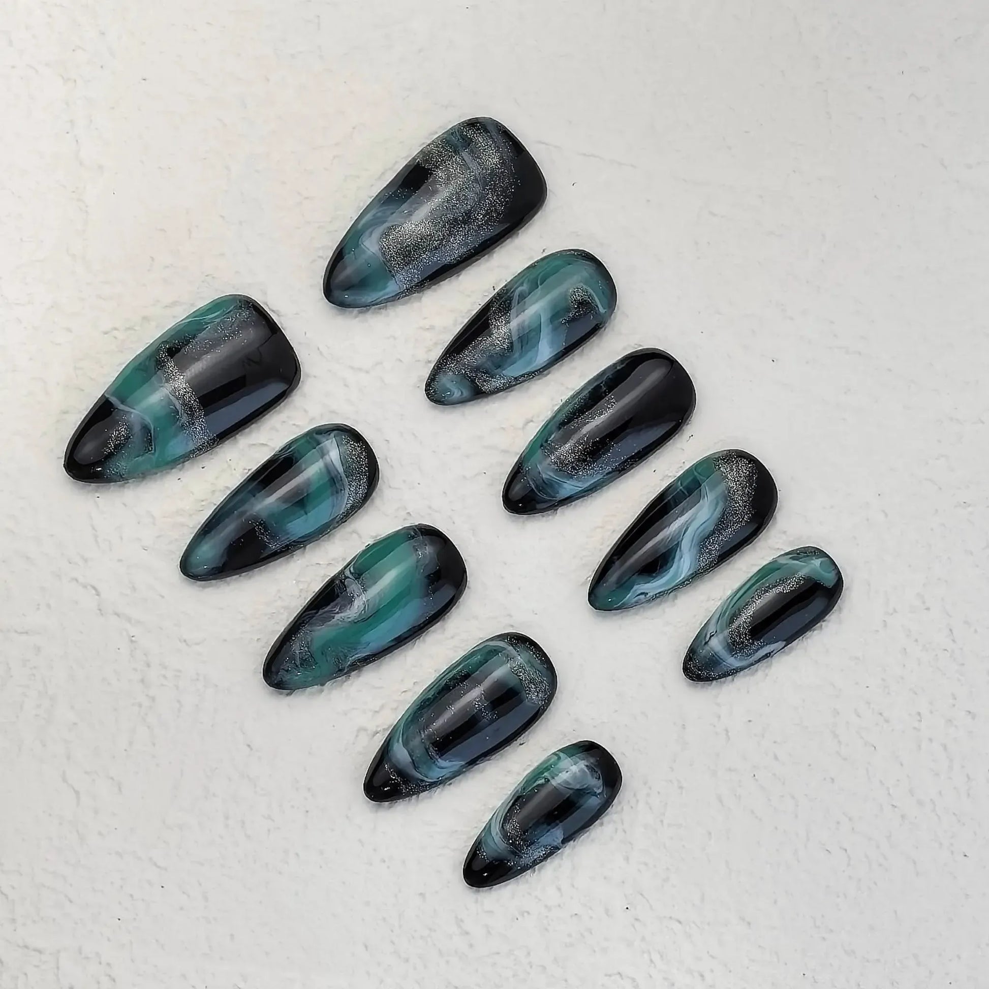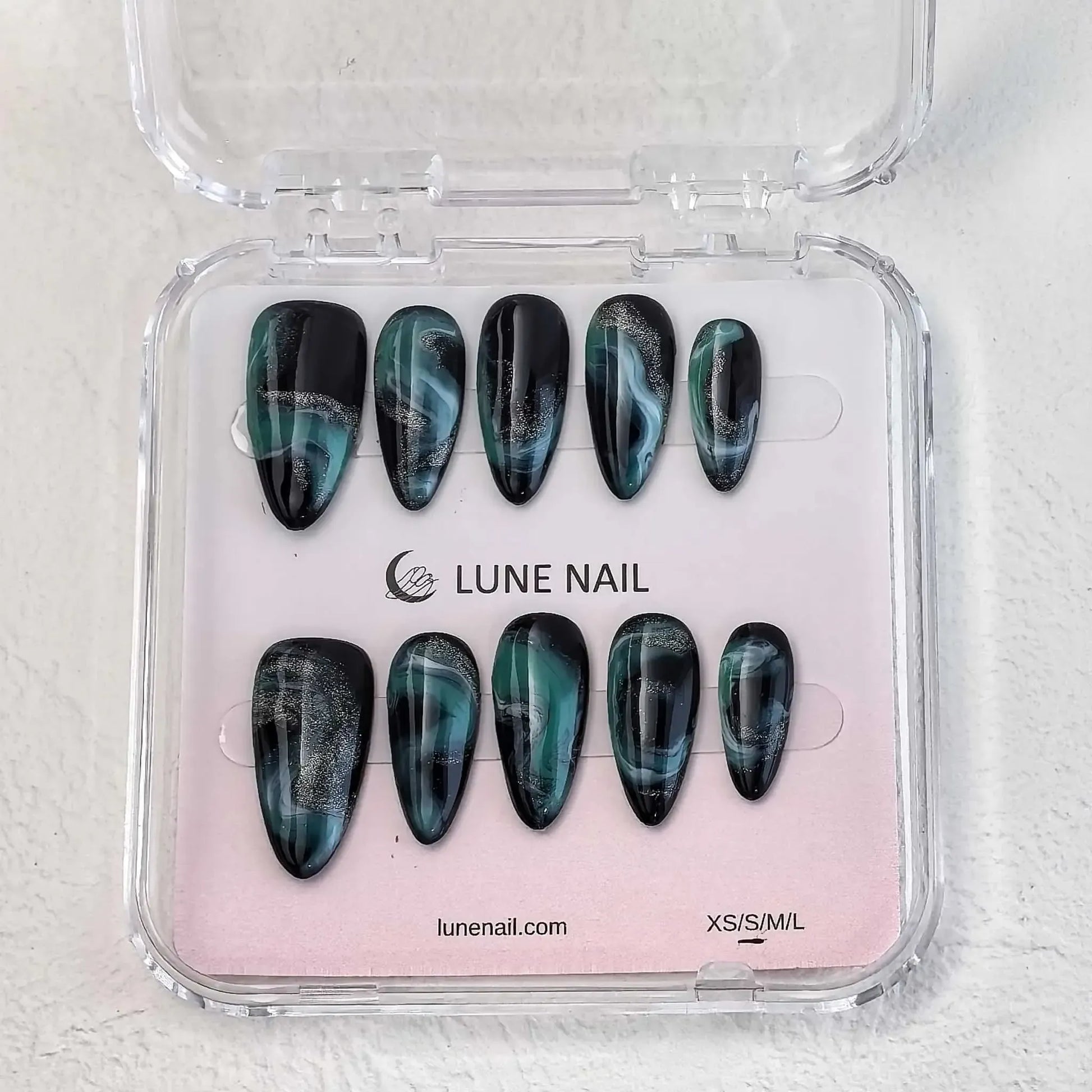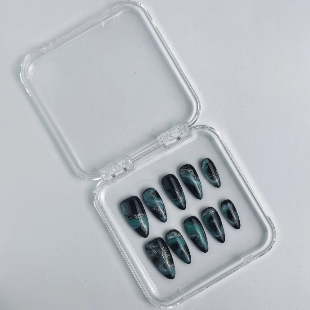 - 10 hand-crafted press-on nails, perfectly shaped & pre-designed