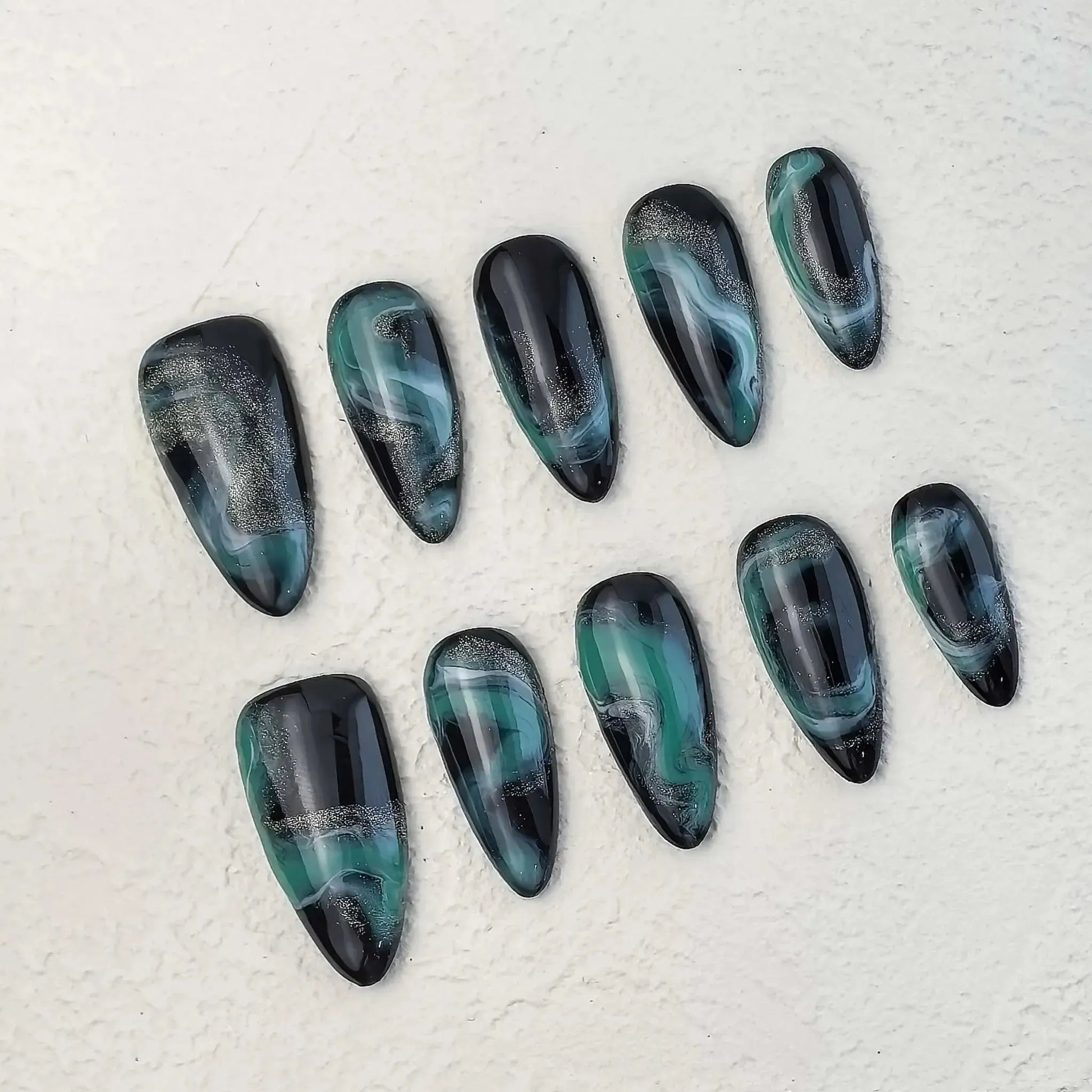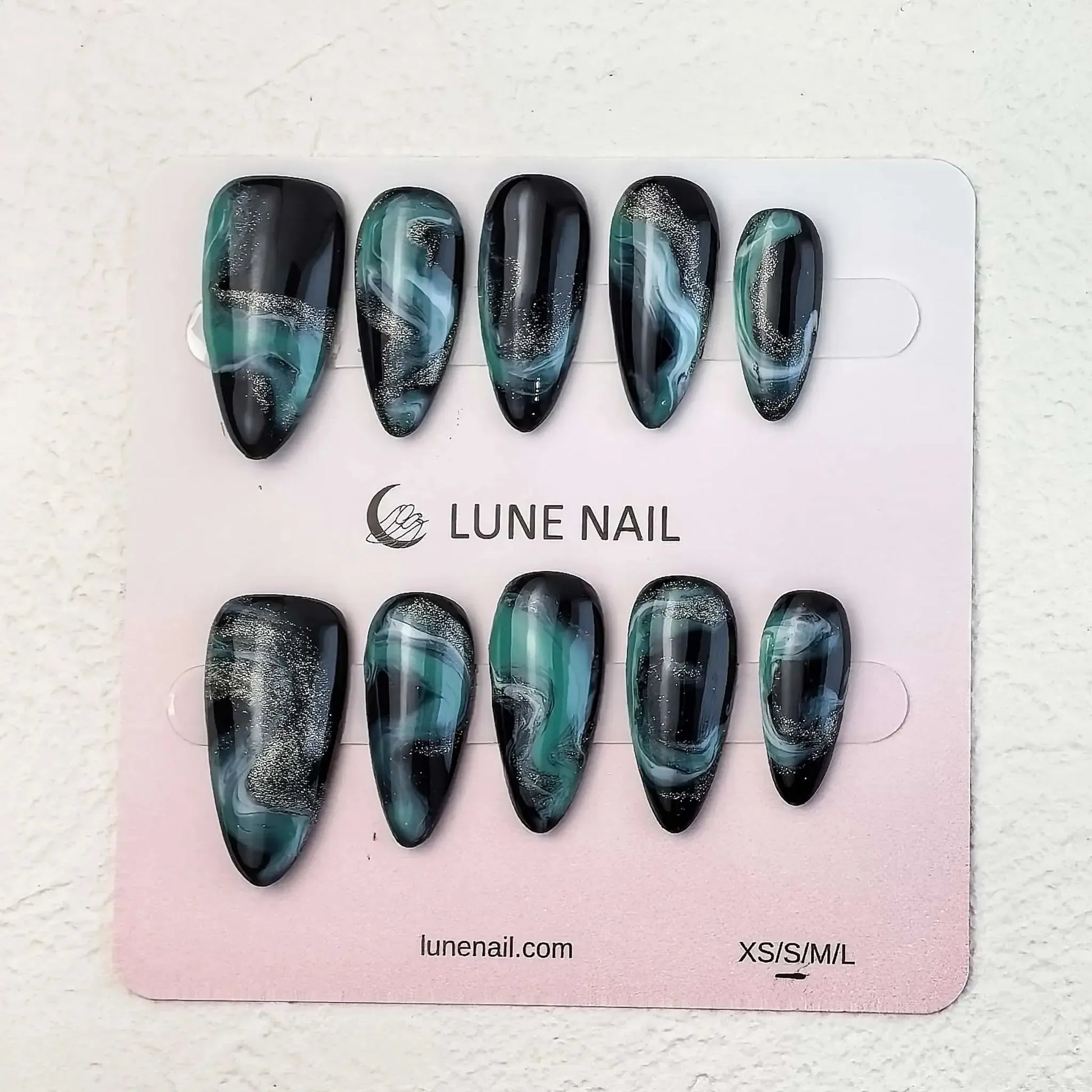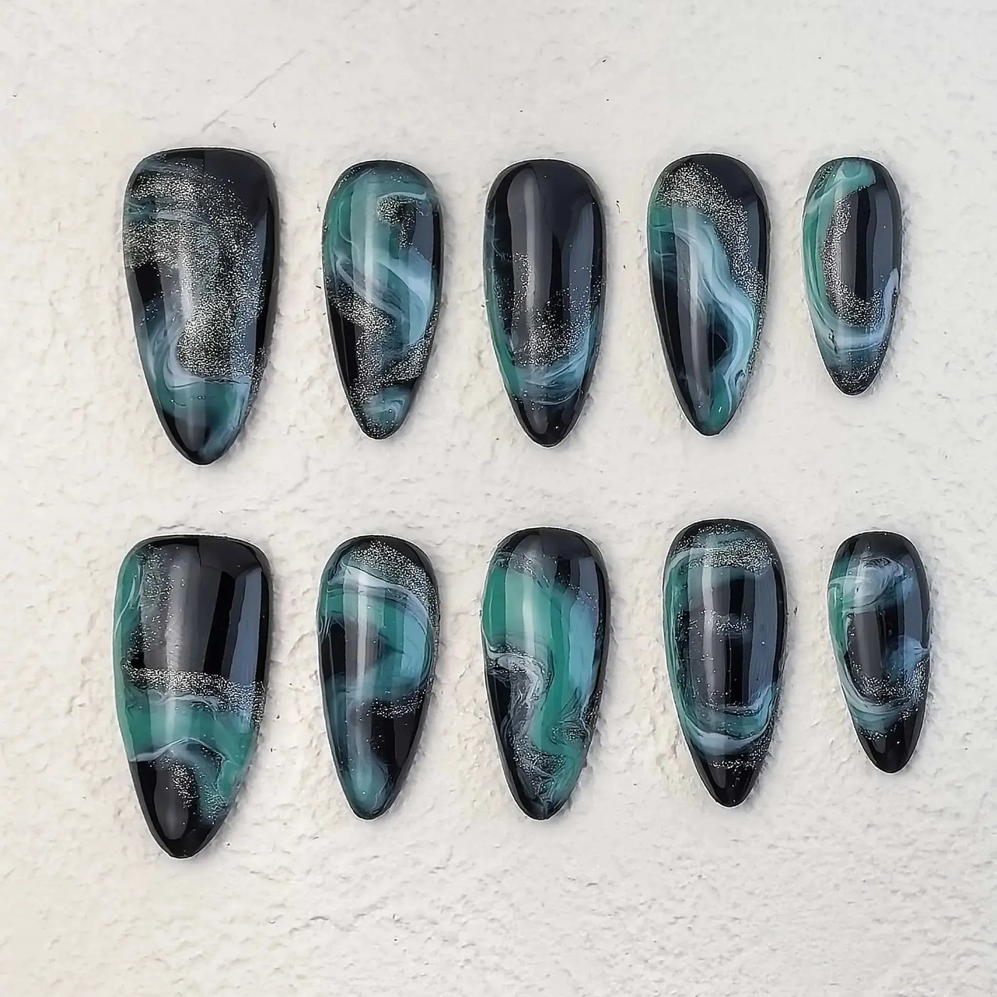 - 10 hand-crafted press-on nails, perfectly shaped & pre-designed