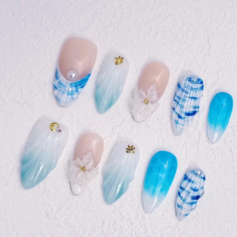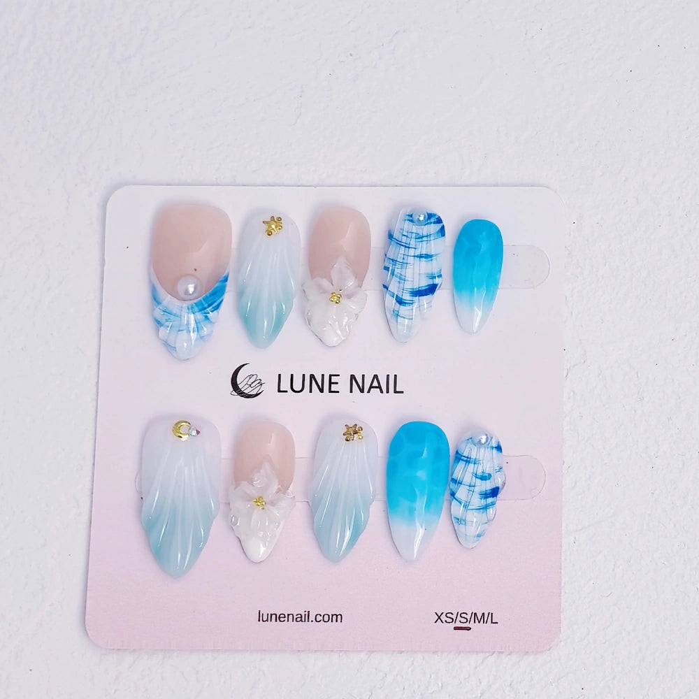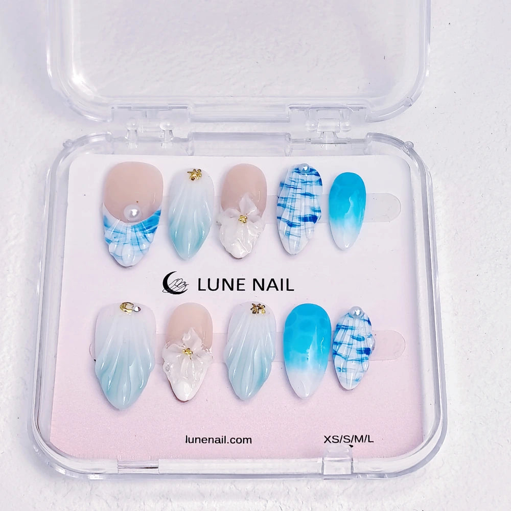 - 10 hand-crafted press-on nails, perfectly shaped & pre-designed