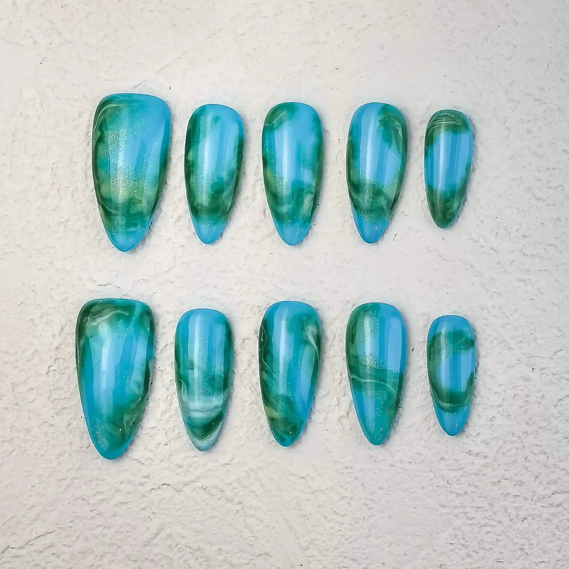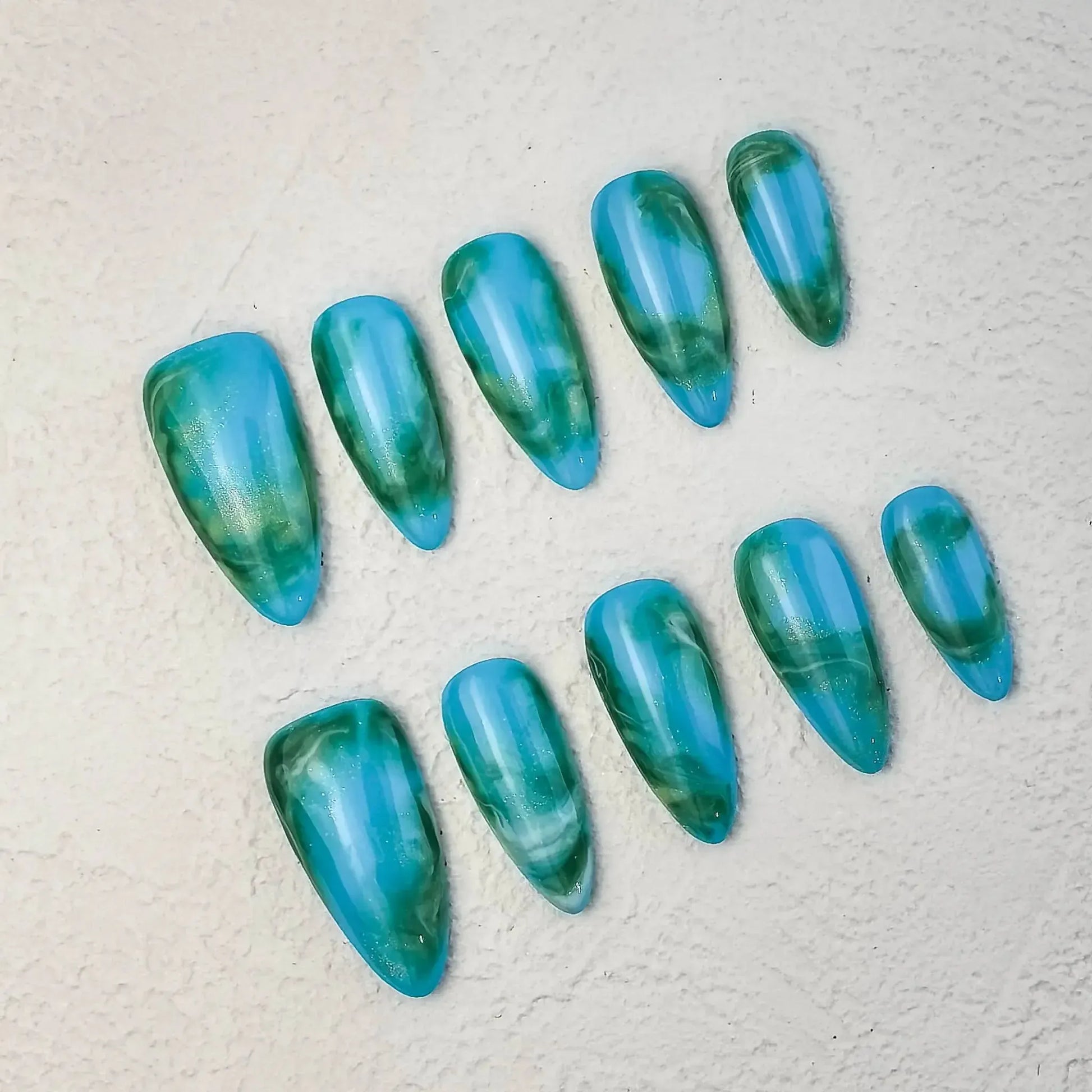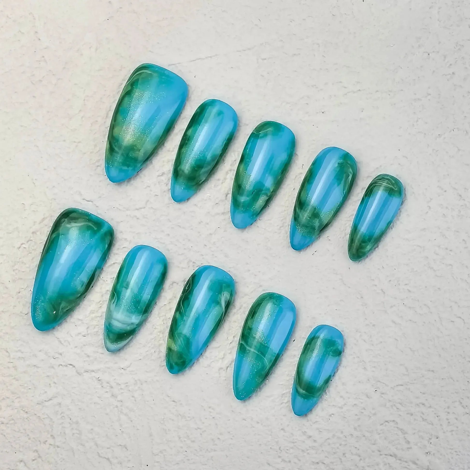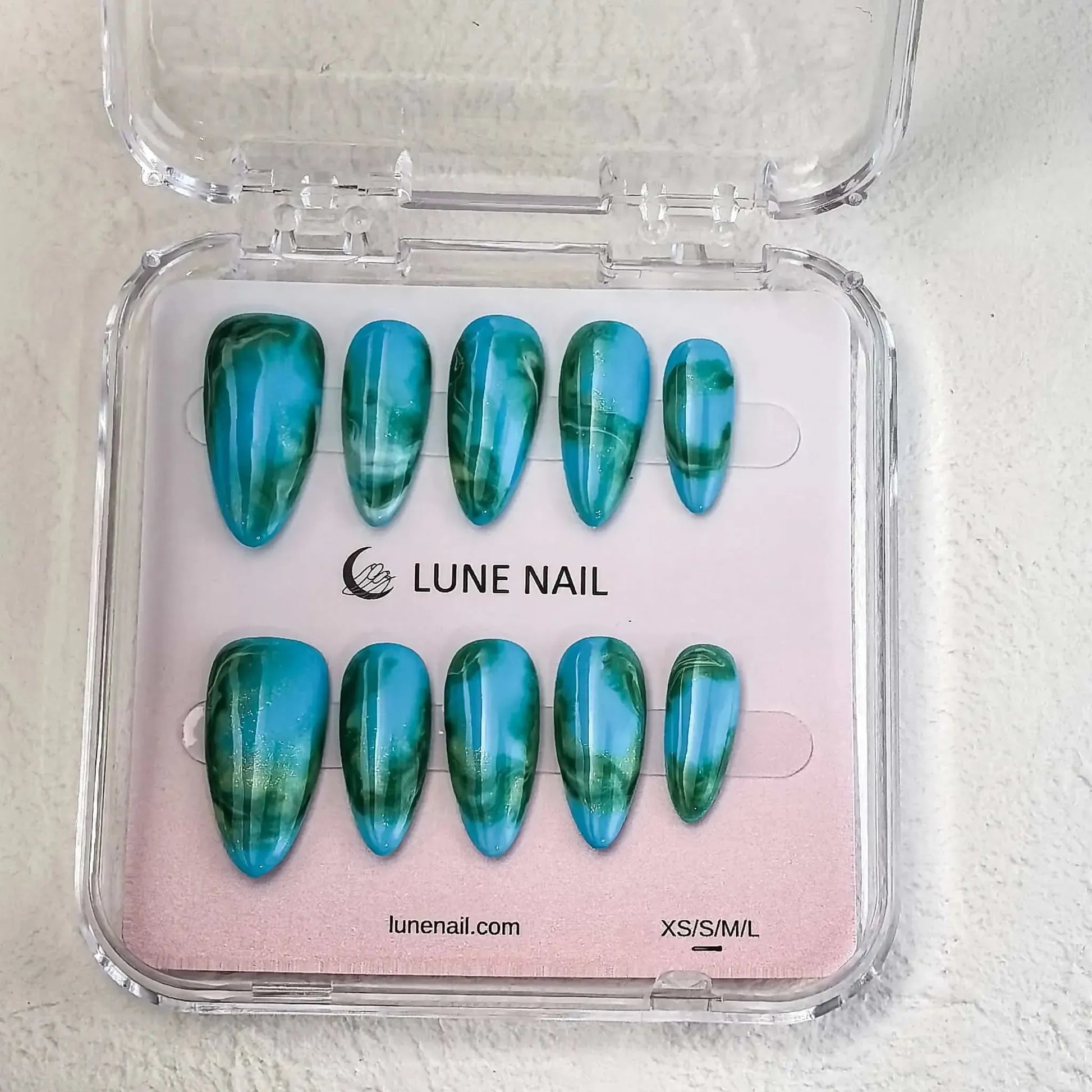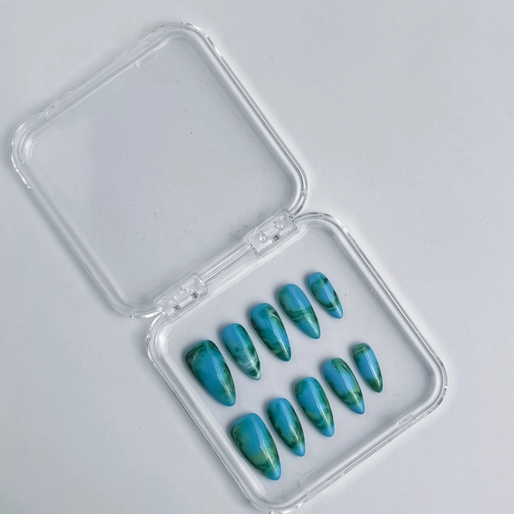 - 10 hand-crafted press-on nails, perfectly shaped & pre-designed