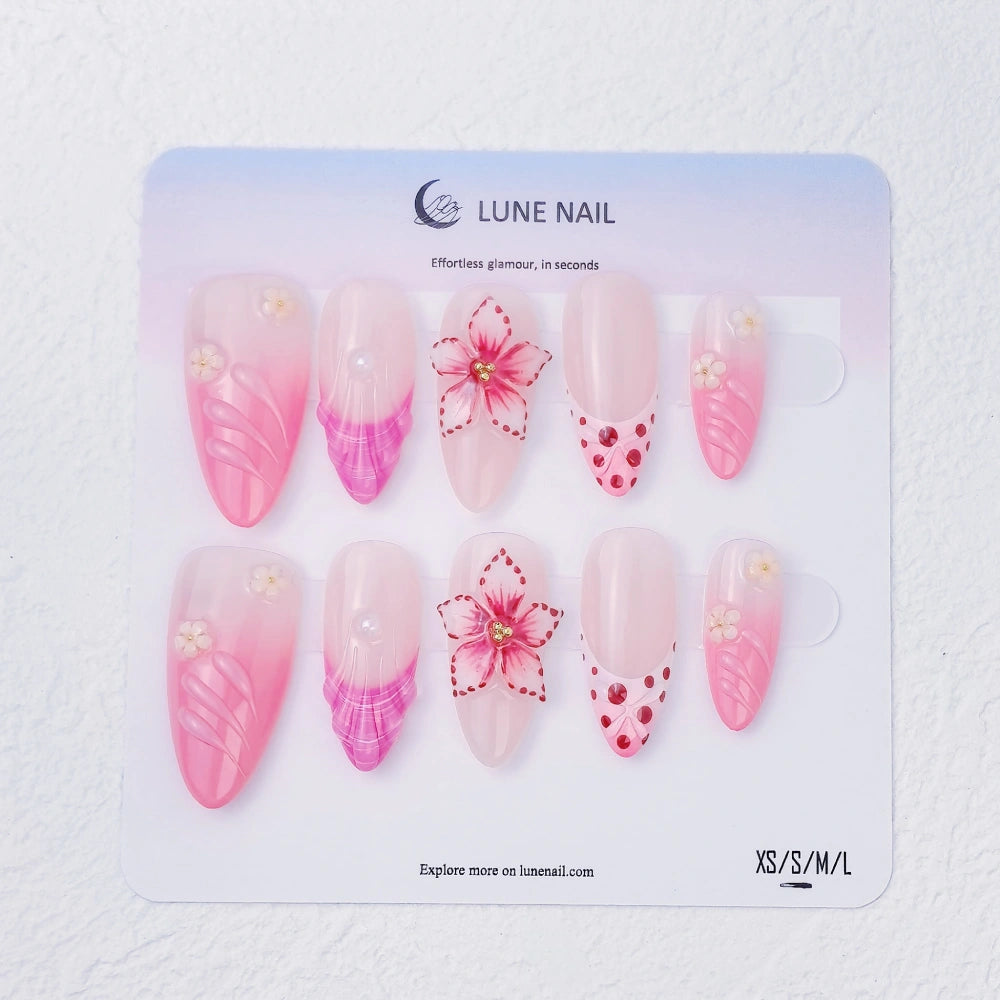 - 10 hand-crafted press-on nails, perfectly shaped & pre-designed
