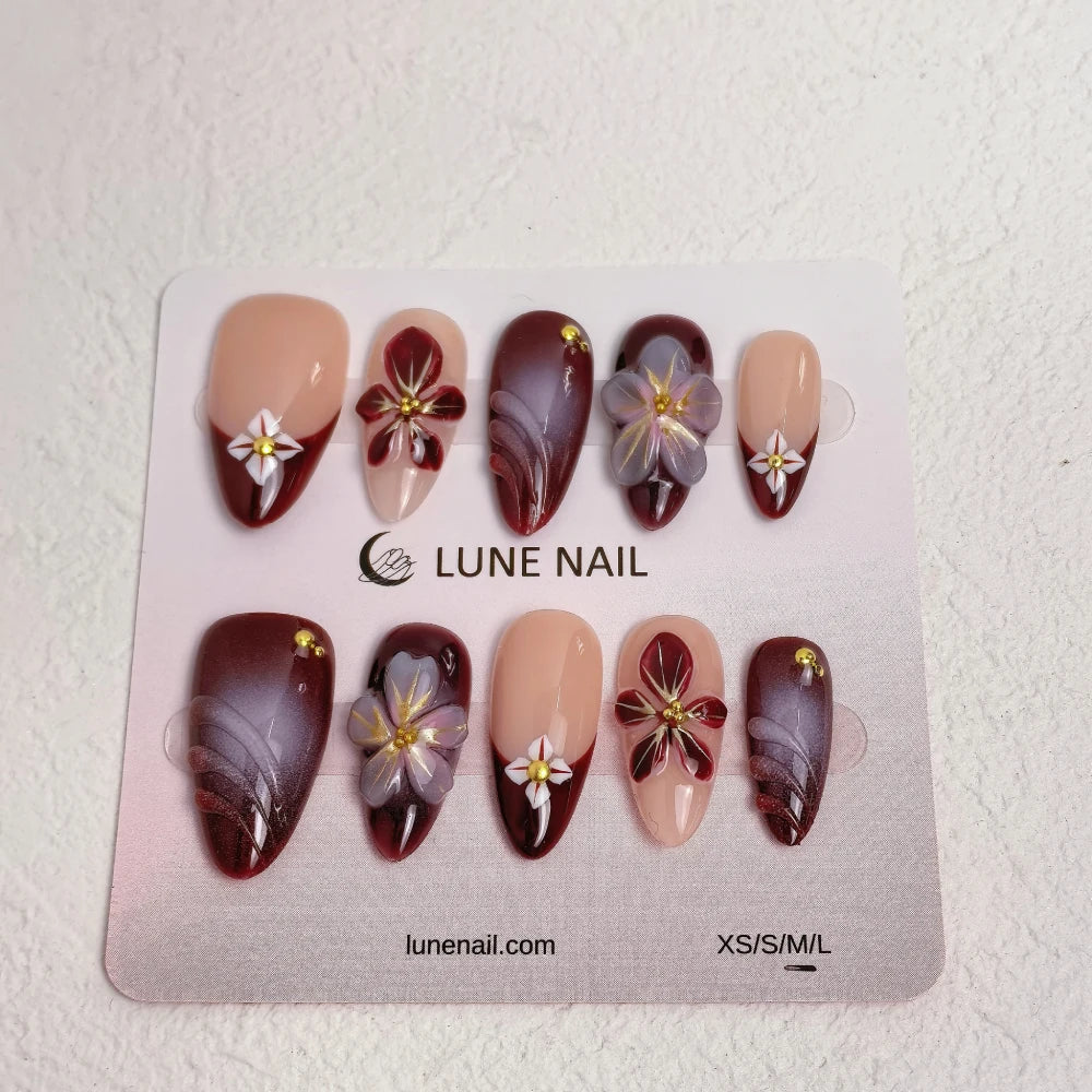 - 10 hand-crafted press-on nails, perfectly shaped & pre-designed