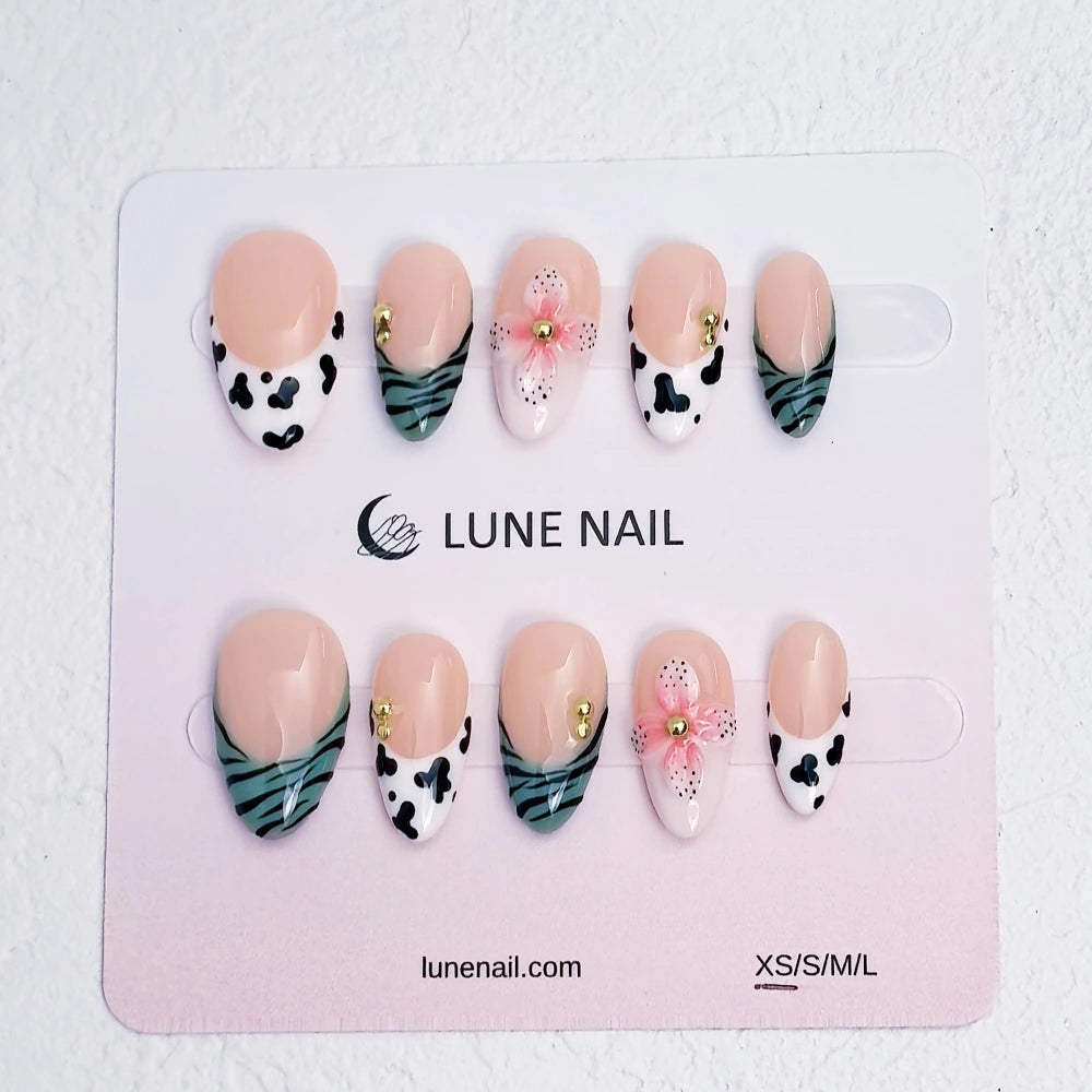 - 10 hand-crafted press-on nails, perfectly shaped & pre-designed