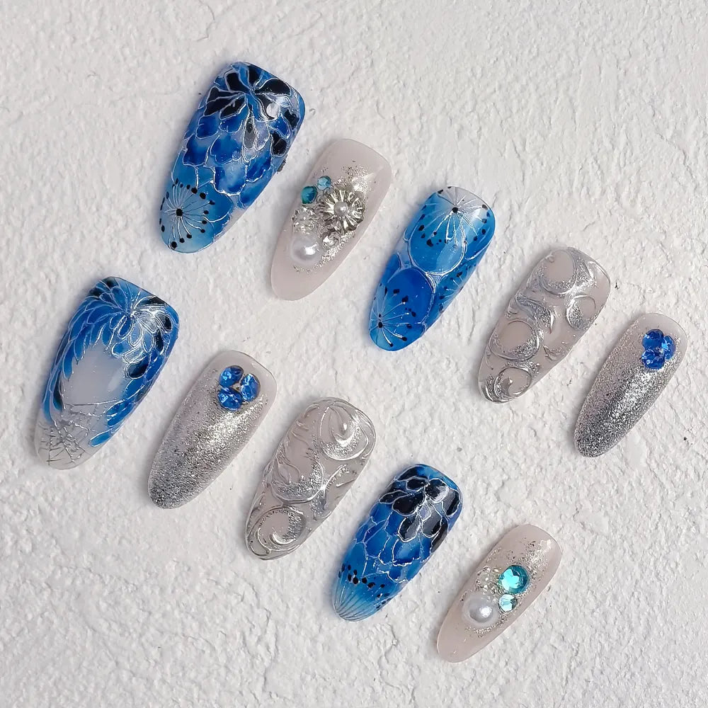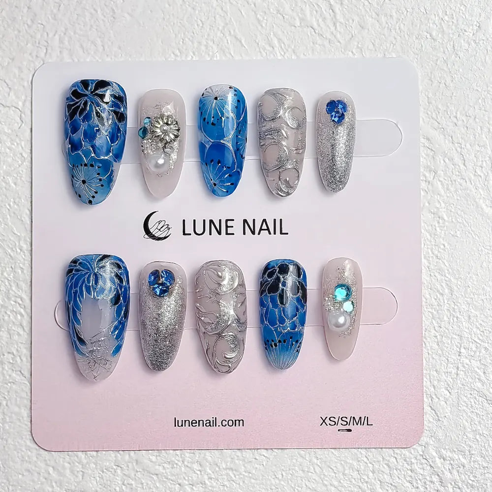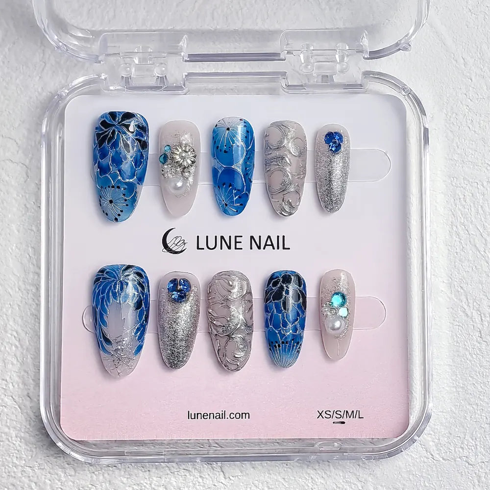 - 10 hand-crafted press-on nails, perfectly shaped & pre-designed