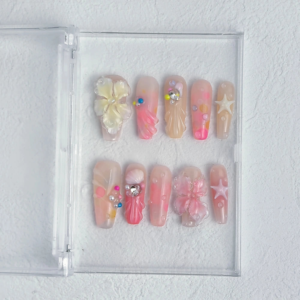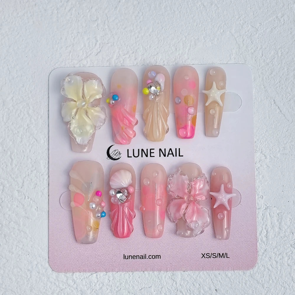 - 10 hand-crafted press-on nails, perfectly shaped & pre-designed