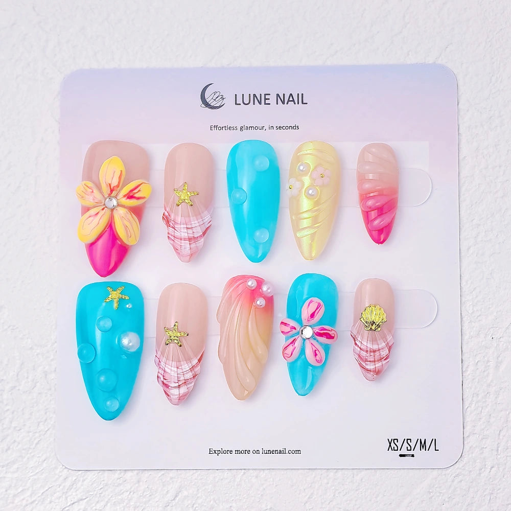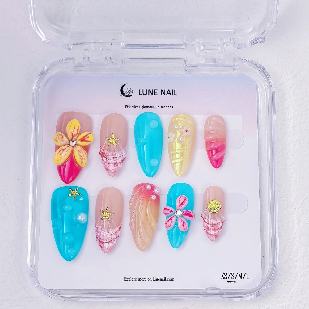 - 10 hand-crafted press-on nails, perfectly shaped & pre-designed