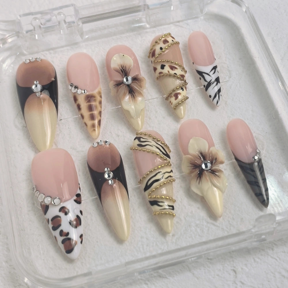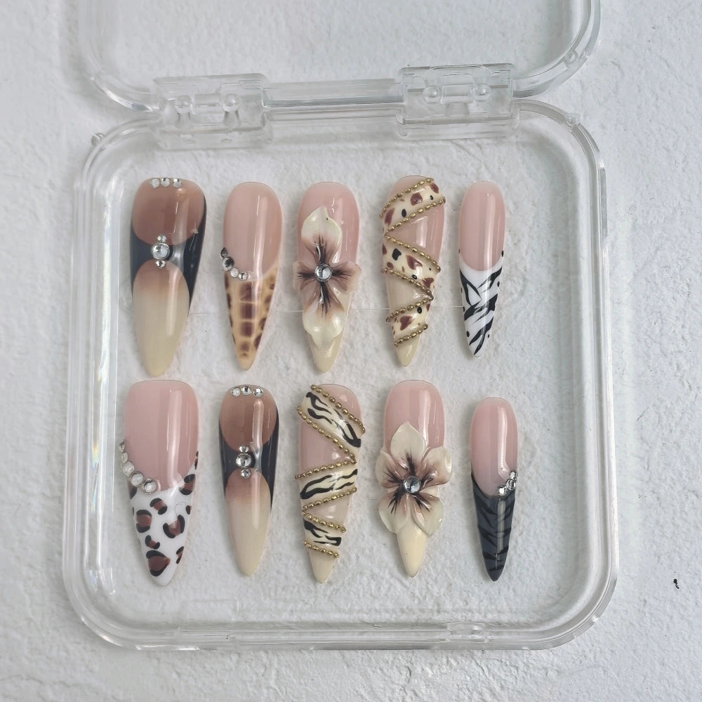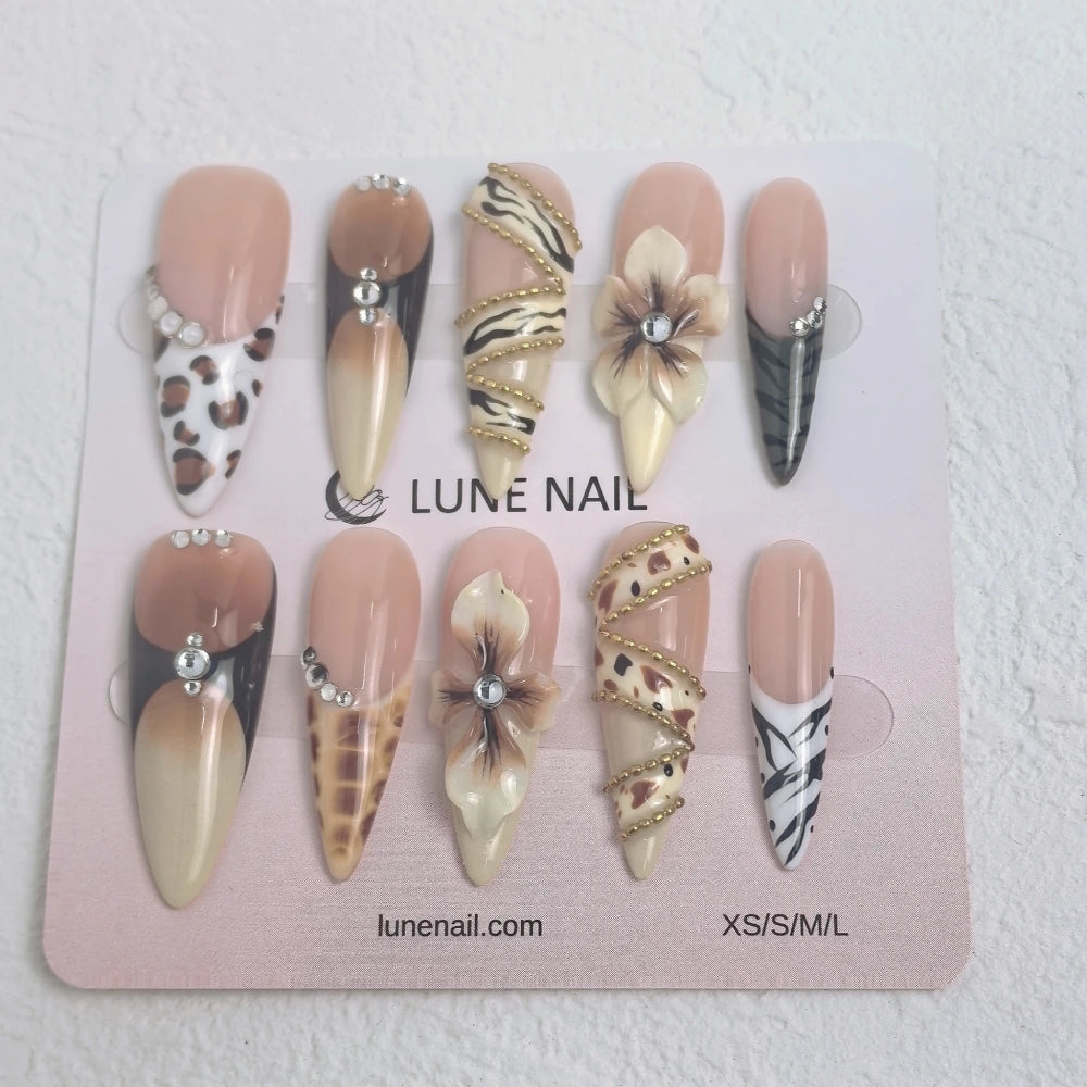 - 10 hand-crafted press-on nails, perfectly shaped & pre-designed